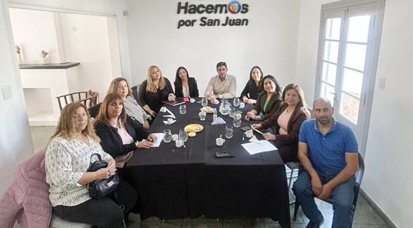 El candidato a diputado nacional que encabeza la lista de Provincias Unidas en San Juan, Emilio Baistrocchi y las candidatas Paola Díaz y Natalia Castro, recibieron al secretariado general de UDAP, encabezado por Patricia Quiroga, la Secretaria Adjunta Alicia Arrieta; el Secretario Gremial, Franco Lucero, entre otros.