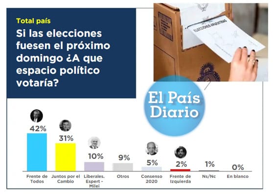 Pero el peronismo no sólo se mantiene arriba de Juntos por el Cambio en provincia de Buenos Aires. En todo el país estaría por lo menos 11 puntos arriba y complicaría una buena elección para el macrismo.