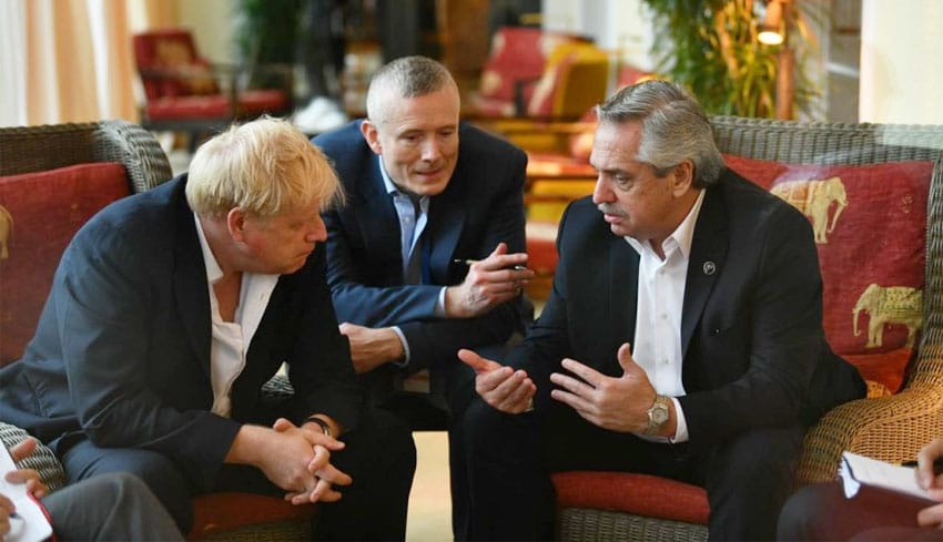 Durante la breve reunión que tuvo lugar durante el Cumbre del G7, foro que integra Gran Bretaña y al que Argentina asistió como invitado, Johnson recalcó que su país no está dispuesto a hablar del tema.