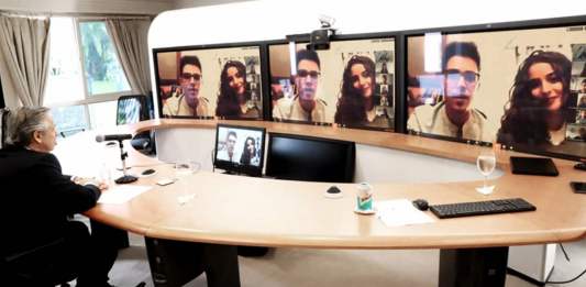 El Presidente Alberto Fernández mantuvo, desde la residencia de Olivos, un diálogo mediante videoconferencia con 120 jóvenes de 60 ciudades del mundo convocados por el Papa Francisco, que forman parte de la red educativa Scholas Occurrentes, con quienes compartió los desafíos que enfrentan los diferentes países ante el avance del coronavirus.