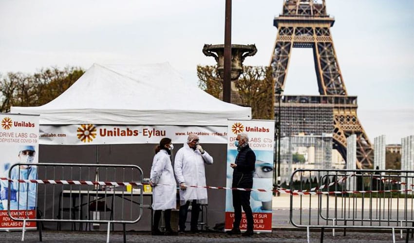 El director general de Sanidad, Jérôme Salomon, informó en su conferencia de prensa diaria que había 7.148 pacientes en terapia intensiva, un récord en Francia, y que se acercaba al tope de 10.000 camas habilitadas con la epidemia para los casos graves.