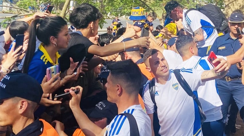 Boca llegó a San Juan y causó euforia al arribar al Hotel Del Bono, donde los hinchas esperaban a sus jugadores para tomarse fotos y conocer a los protagonistas del partido de