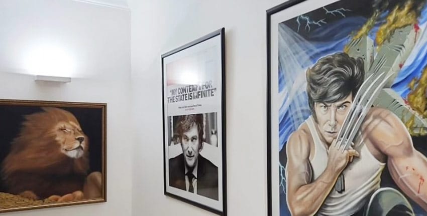 Megalomanía: Milei armó en Olivos una galería con retratos de sí mismo