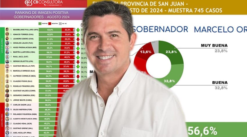 Por su parte, el Gobernador de San Juan, Marcelo Orrego, alcanzó un nivel de aprobación de 56,6%, ubicándose entre los 10 mandatarios mejor valorados.