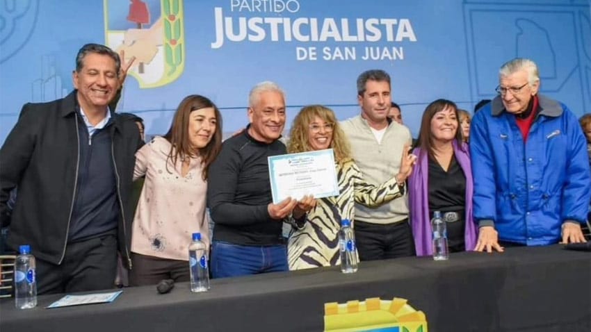 El acto de proclamación se realizó en la sede del Partido Justicialista, ubicada en 25 de Mayo y avenida Alem. Allí se cruzaron los apellidos tradicionales del peronismo local, tal el caso de Gioja y Uñac, entre otros.