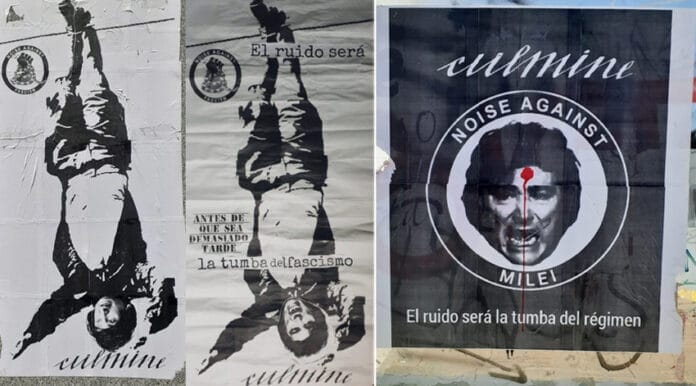 Una de las amenazas muestra dos frases con un mensaje similar. La primera, en castellano, dice: "el ruido será la tumba del régimen", en tanto que la segunda está en escrita en inglés y dice: "noise against Milei", lo cual se traduce como "ruido contra Milei".