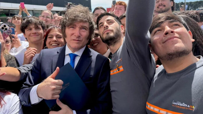 El mandatario atravesó algunas cuadras subido en la parte trasera de una camioneta junto a la Secretaria General de la Presidencia, Karina Milei, y el candidato a diputado nacional por la provincia cuyana de La Libertad Avanza, Luis Petri.