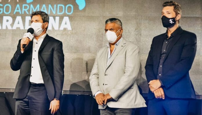 El Gobernador de San Juan, Sergio Uñac, estuvo presente en el anuncio de la sede y el sorteo de grupos de la Copa Diego Armando Maradona que se realizó este lunes en la ciudad de Buenos Aires, junto al presidente la AFA, Claudio Chiqui Tapia; el presidente de la Liga Profesional de Fútbol, Marcelo Tinelli, y los representantes de todos los clubes de Primera División. El mandatario provincial estuvo acompañado por el secretario de Deportes, Jorge Chica.