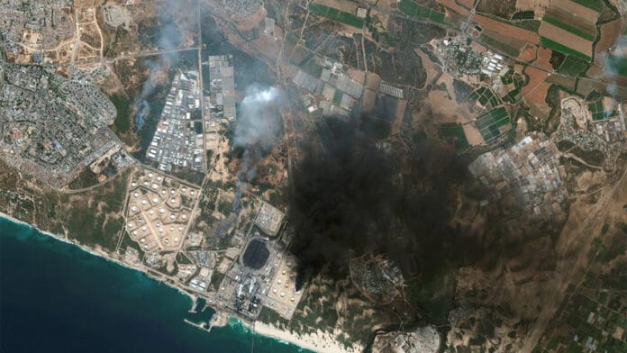 Uno de los cientos de misiles lanzados por Hamas impactó en un oleoducto ubicado entre las ciudades de Eilat y Ashkelon, causando un enorme incendio que los bomberos ya intentaban apagar.