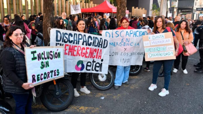 Durante la sesión, prestadores, profesionales, familiares, transportistas e instituciones del sector de discapacidad realizaron un paro y movilizaciones en distintas plazas del país, reclamando que los senadores anularan la decisión presidencial.