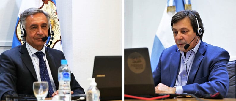 La sala de Vicegobernadores de la Legislatura de San Juan fue la sede donde los senadores nacionales por San Juan, Rubén Uñac y Roberto Basualdo, participaron de la primera sesión virtual de la historia argentina.