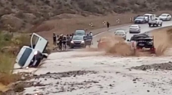 Ruta 141, Caucete transitable con precaución.